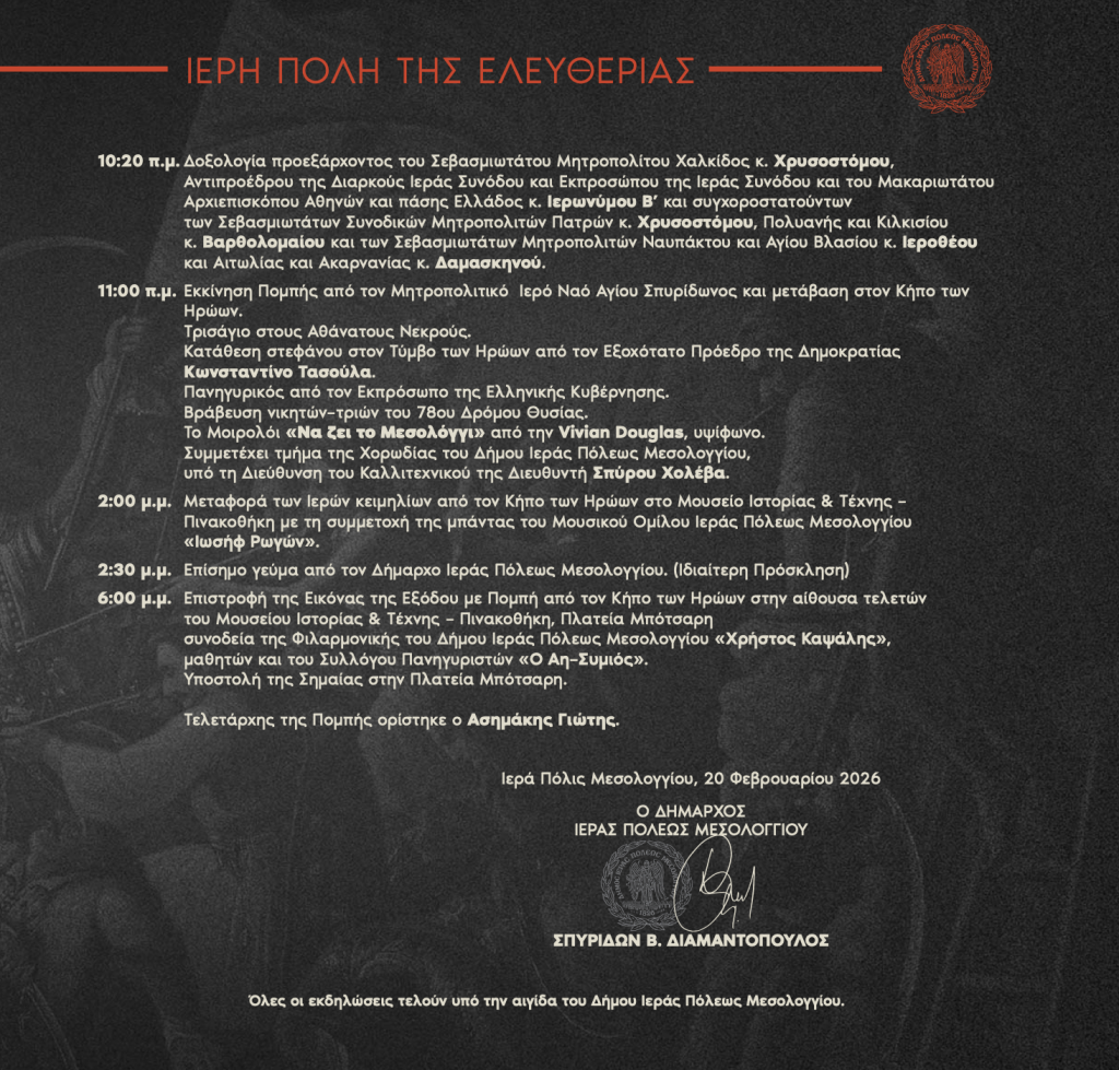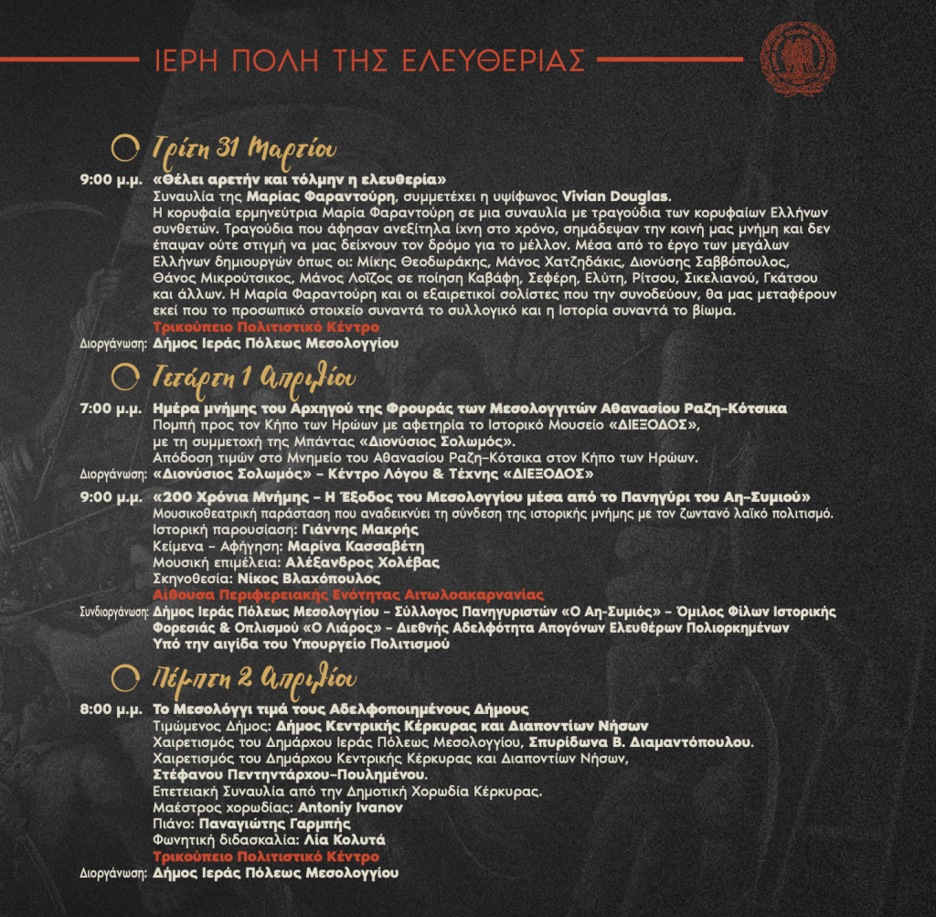 Το πλήρες πρόγραμμα βρίσκεται αναρτημένο στο σύνδεσμο: https://messolonghi.gov.gr/23138-2/