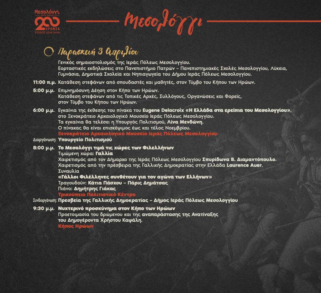 Άνοιξε η τελευταία εβδομάδα από το Πρόγραμμα Εορτασμού 200ης Επετείου της Εξόδου της Ηρωικής Φρουράς των Ελεύθερων Πολιορκημένων